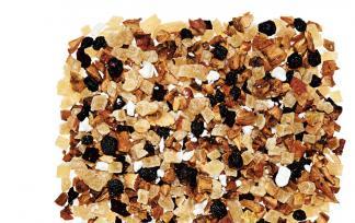蓝莓清新的口感以及鲜艳多汁的柑橘味道不仅让人垂涎欲滴,而且提升你对美味可口的水果茶饮的期待。菠萝粒,柠檬皮和梅子的组合给人以新鲜丰富的视觉体验。这款茶并没有玫瑰茄的成分,茶款的颜色主要来自甜菜根片。