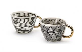 陶瓷杯/黄金装饰/0.2L/2种/可微波