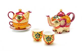 黄金装饰精骨瓷/手绘/三件套壶/壶0.3L/杯0.17L