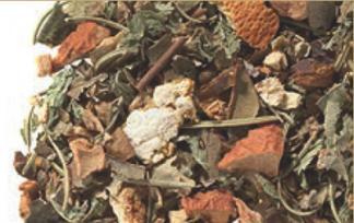 成分: 生姜粒,苹果粒,香橙皮,迷迭香叶, 柠檬桃金娘,马鞭草叶,黑莓叶,银缎树花
